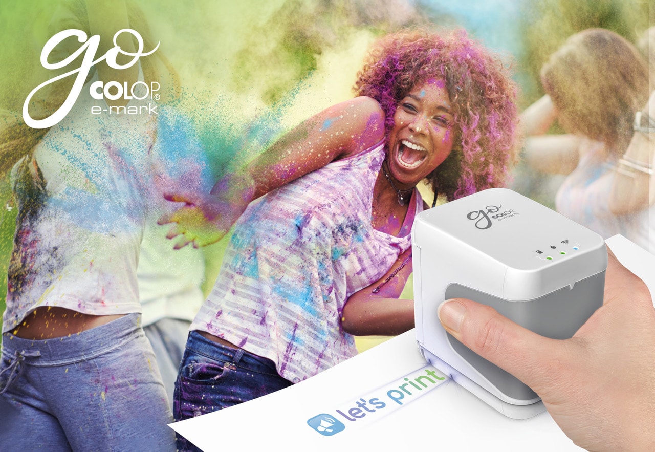 Nejnovější mobilní tiskárna COLOP, e-mark ® go, vyvinutá a vyrobena v Rakousku, umožňuje lidem tisknout své návrhy otisků v intuitivní aplikaci na jakýkoli savý povrch. Zařízení s heslem „let´s print“ je snadno použitelné a velmi kompaktní, pomáhá vyjadřovat emoce a kreativitu.